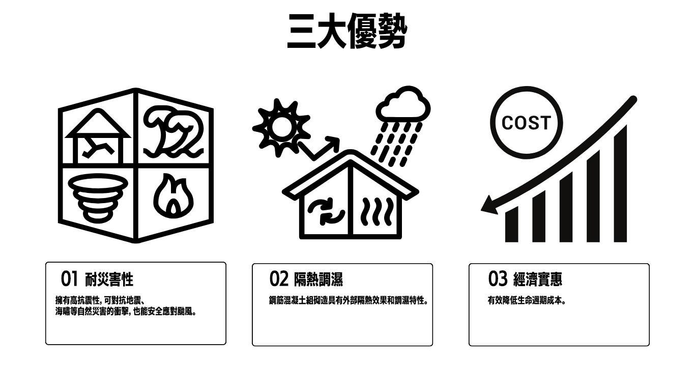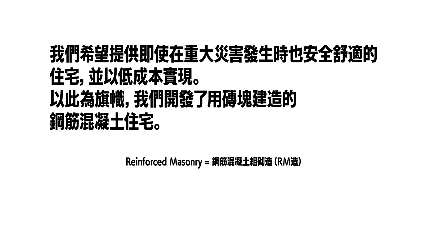 組砌造是世界上最廣泛採用的傳統耐火建築結構。組砌造最大的特點是其卓越的耐久性和使用壽命,這是其他構造方法無法實現的。歷經數百年的歷史建築物遍布世界各地。在這樣的背景下,鋼筋混凝土組砌造(RM造)是一種創新的混合型結構,結合了組砌造和鋼筋混凝土的核心技術,可應用於各種用途。它確保了與鋼筋混凝土造相當的地震抵抗力,並用於承重牆、耐久牆、牆體和基礎,以及現有建築物的耐震牆增設和擋土牆等多種應用。此外,由於不需要進行外牆工程,因此可以貼著邊界進行建設。這項技術不僅在抗震、耐熱方面表現出色,而且具有高氣密性、高隔熱性、高隔音性、長使用壽命,在經濟性和設計耐用性等方面也具有優勢,能夠實現優質住宅。 ※ 用石頭、磚塊、混凝土砌塊和類似材料構建的組砌造建築物